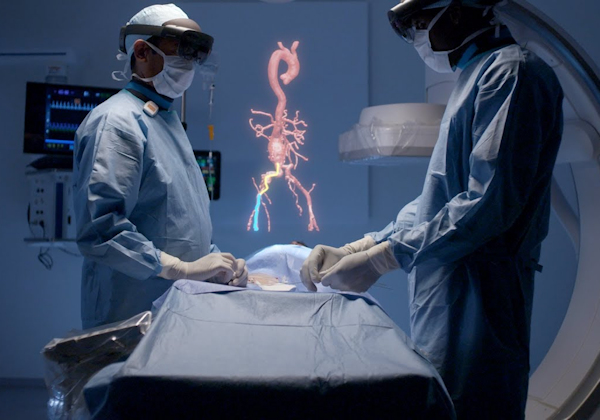 The episode, titled “Out For Blood,” featured a patient undergoing a cerebral bypass, surrounded by a team of doctors and nurses, all wearing HoloLens 2 devices while working together.